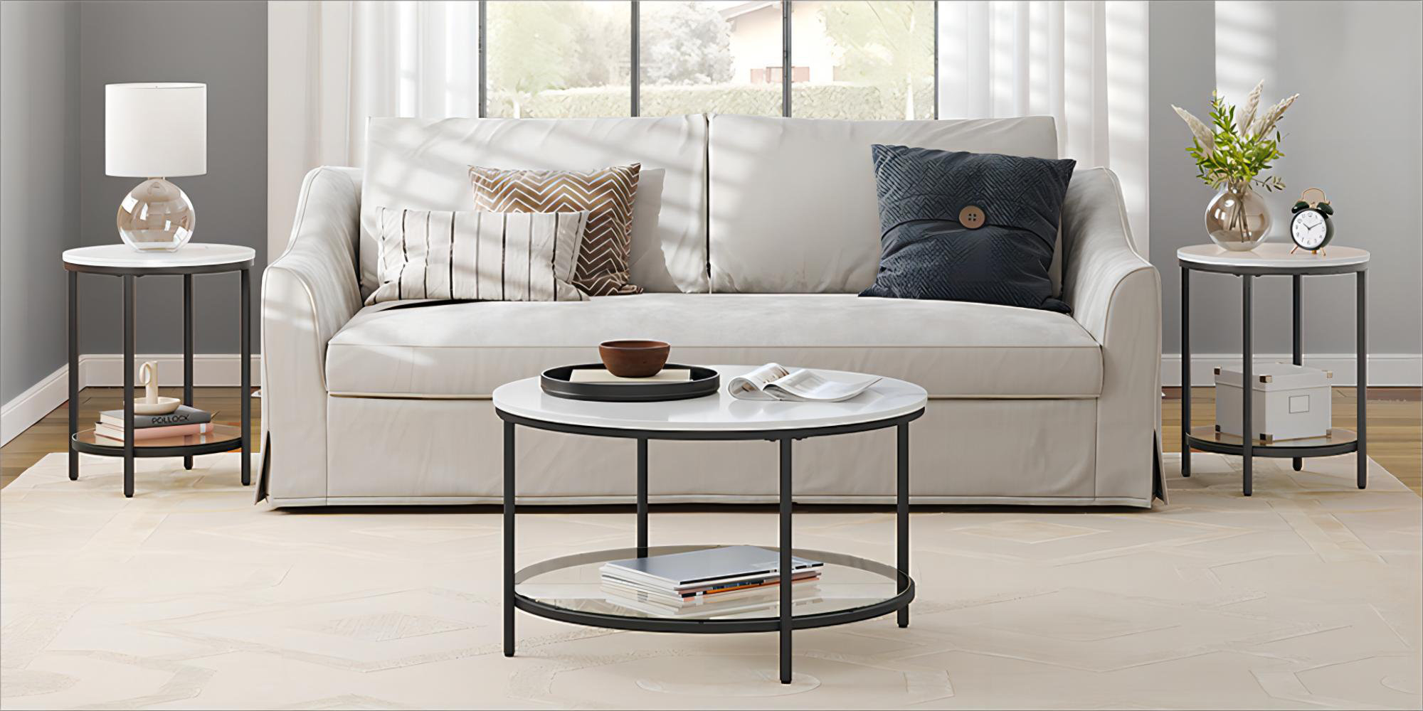 Provide enhanced stability, ensuring that the round table remains sturdy and secure. The steel frame, glass shelf, and marble-look top exude a minimalist modern vibe.