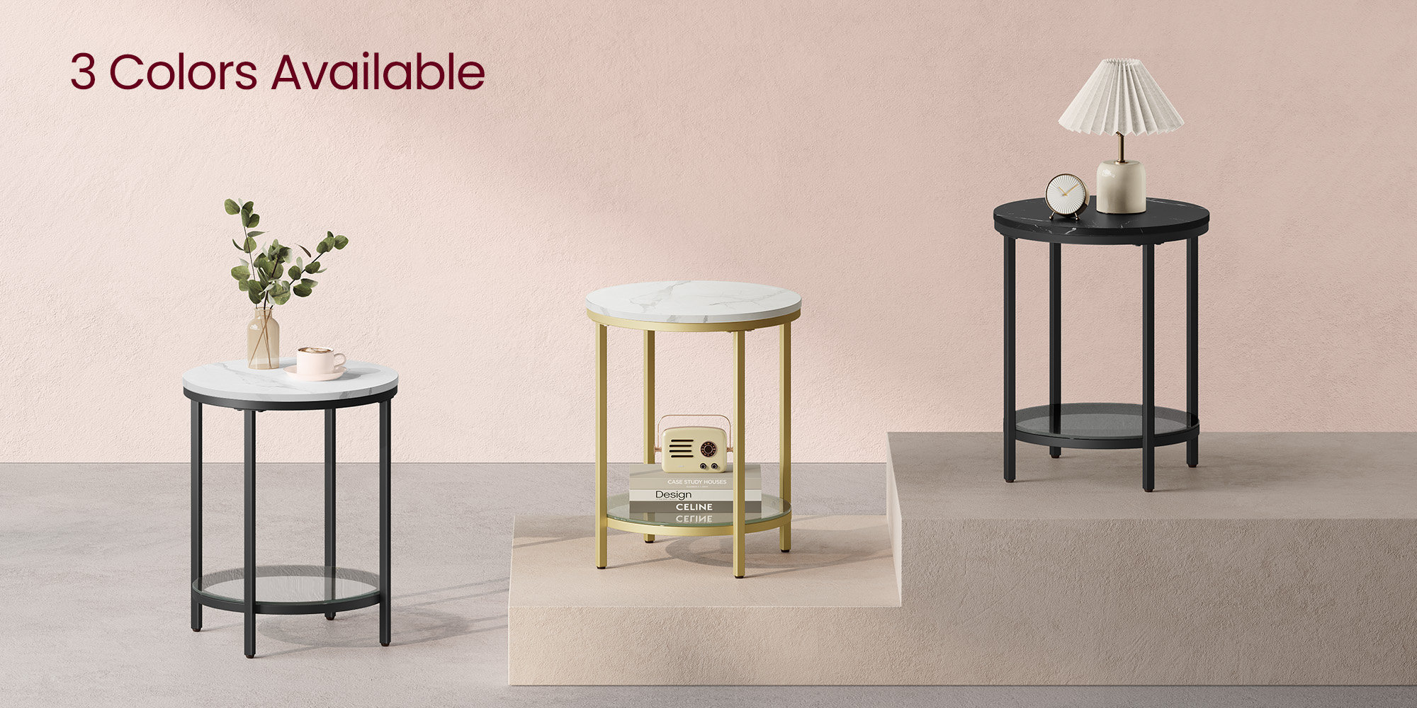Its marble-look top, glass shelf, and steel frame add a touch of modern aesthetics to your home, making it suitable for various decor styles.